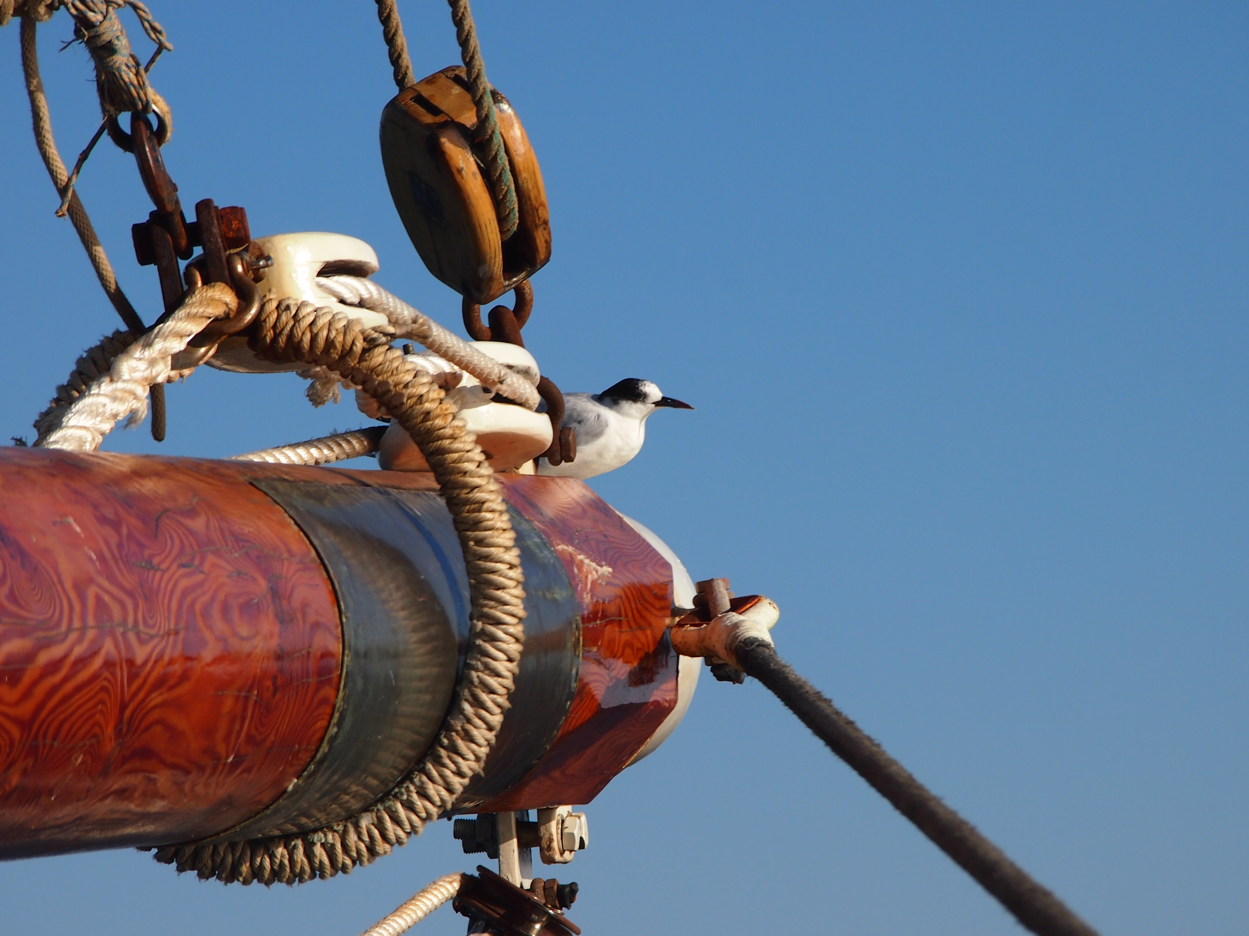 A tern pauses on Tecla’s bowsprit to greet us as we approach the mouth of the River Plate, Argentine continental shelf, Southwest Atlantic Ocean