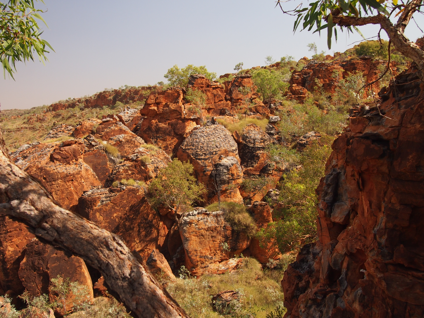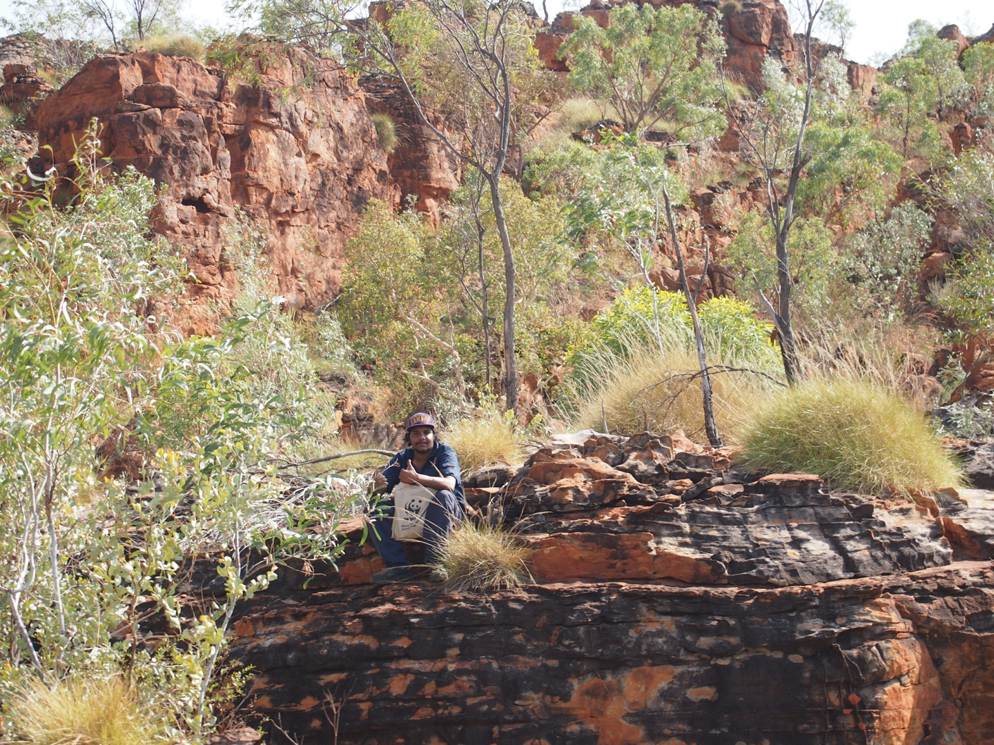On dusk one evening clambering back down with effervescent ranger John, we ran into another surveying pair, rangers Conan and Ashton. They said that they’d just sighted a black-flanked rock-wallaby. There was much excitement from John and me and when Conan and Ashton pointed to the ledge upon which they’d spotted the well-balanced macropod, I was instantly taken by the nature of this so-called ledge – more a steep sloping bulge jutting out from the sheer cliff! Only the black-flanked rock-wallaby could rest upon such a ‘ledge’ – their tail, which is about the same length as their body, providing them great counter-balancing powers, not to mention their phenomenal leathery gripping feet.